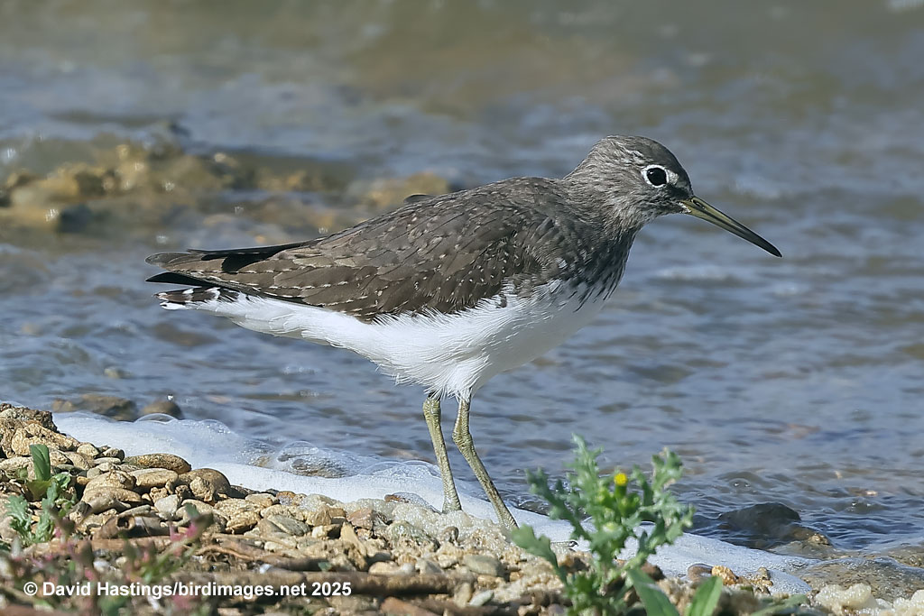 Green Sandpiper (Tringa ochropus). Juvenile. Taken at Standlake Common, Oxon., on October 5th 2025. Juvenile. Taken at Standlake Common, Oxon., on October 5th 2025. (© David Hastings) (Canon R7+RF100-500, f/7.1, 1/800th, ISO250, 500mm. Click image for larger version) Description L: 20 - 24cm; WS: 39 - 44cm The Green Sandpiper is a very contrasting wader which looks like a large House Martin in flight. Its dark, almost black upperparts, pale underparts and white rump are distinctive. It has greenish legs and feet. It breeds across subarctic Europe and Asia and is migratory, wintering in southern and western Europe, the Indian subcontinent, Southeast Asia, and tropical Africa. It breeds in waterlogged wooded areas, on bogs and marshes. It has Amber status on the UK list. Around 1000 birds over-winter here. Sightings | 05-Oct-2025 | : | Standlake Common, Oxon | (1) |