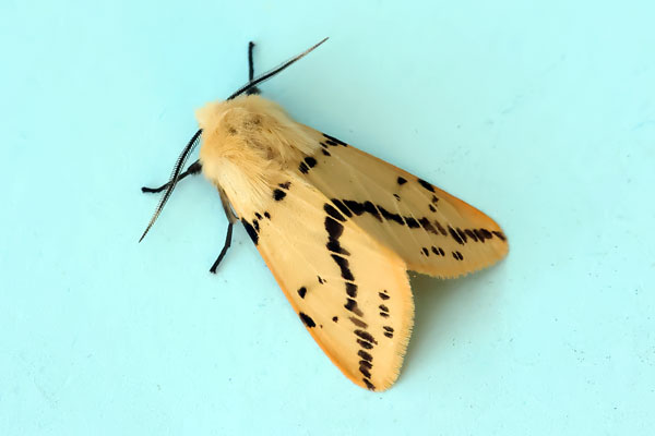 Taken at Aston, Oxon., on May 11th 2022. (© David Hastings) (1/640th sec at f13) Description Family: Erebidae (ABH : 72.019) Wing span: 32 - 44mm This moth is usually quite distinctive, with a very broad yellowish-buff to whitish-buff forewing, and paler hindwing. There is a row of rather elongated spots on the forewing. It is widely distributed in the British Isles, except for north-east Scotland. Typical habitats are parks, gardens, hedgerows and woodland. There is one generation from mid-May to July. The pupa is the over-wintering stage. Larvae feed on many herbaceous and woody plants, including Common Nettle, Honeysuckle, plums and birches. It comes regularly to light. Earliest UK sighting: 11th May ; Latest UK sighting: 17th August Sightings | 17-Aug-2025 | : | Alvescot, Oxon | (4) | | 19-Jun-2025 | : | Aston, Oxon | (1) | | 12-Jun-2025 | : | Aston, Oxon | (1) | | 19-May-2025 | : | Aston, Oxon | (2) |
