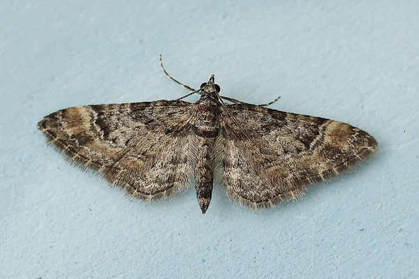 Taken at Aston, Oxon., on April 9th 2026. (© David Hastings) (Canon R6+RF100, f/7.1, 1/200th, ISO2000, 100mm) Description Family: Geometridae (ABH : 70.141) Wing span: 16 - 20mm This moth is quite variable in size, as well as in appearance. The two black-edged cross-lines on the forewing are usually conspicuous. It is found throughout the British Isles. A wide range of habitats are used, from urban parks and gardens, to hedgerows, roadside verges, heathland, moorland, and woodland. It overwinters as a pupa in plant debris. Adults are mainly seen from March to October in two or three generations, but have been recorded in every month of the year. Larvae feed on the flowers of many plants, including Holly, Ivy, Gorse, Broom, heathers, Rowan, buddleias and roses. It sometimes flies in hot sunshine, but its main flight period is just before dusk. Earliest UK sighting: 9th January ; Latest UK sighting: 8th September Sightings | 09-Apr-2026 | : | Aston, Oxon | (2) |
