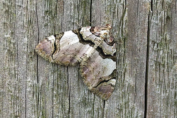 Male. Taken at Standlake Common, Oxon., on April 16th 2023. (© David Hastings) (1/1000th sec at f11) DescriptionFamily: Geometridae (ABH : 70.067) Wing span: 28 - 32mm This moth is quite distinctive. The quite rounded fore-wing has a broad, pale central band, thickly edged with black on the basal side, and with a deeply elbowed outer margin, which is darkened only in the leading half. This appears to stream away from the leading edge, hence the name. Fresh specimens may show a pinkish tinge. It can be found throughout the British Isles. Habitats are open woodland, rides and edges, hedgerows, gardens and other scrubby places. There is one generation in April and May. It over-winters as a pupa. Larvae feed on Dog-rose and probably other species of wild rose. It flies from dusk and comes to light. It can sometimes be found on fences by day. Earliest UK sighting: 9th April ; Latest UK sighting: 2nd May Sightings