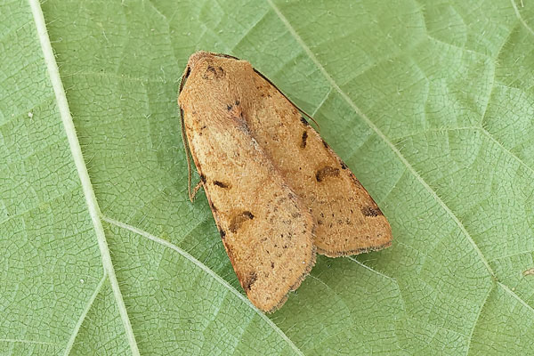 Taken at Aston, Oxon., on September 28th 2025. (© David Hastings) (Canon R6+RF100, f/11, 1/200th, ISO5000, 100mm) DescriptionFamily: Noctuidae (ABH : 73.186) Wing span: 30 - 36mm The fore-wing of this species is somewhat pointed, and the kidney mark is narrow. The oval is generally dark, small and often elongated. The ground colour is most frequently chestnut-brown or reddish-brown, but can vary from brownish-white to blackish. There is usually a dark-coloured diagonal dash on the leading edge near the tip. It is well distributed in England north to Yorkshire and Lancashire. It is local in Wales and Ireland, and rare in Scotland. Habitats include broad-leaved woodland, scrub, hedgerows, grassland, heathland and gardens. There is one generation from September to early November. It over-winters as an egg. Larvae feed on various herbaceous plants, including buttercups, clovers and chickweeds. When larger they also feed on Hawthorn and other broad-leaved trees and shrubs. It comes to light and sugar, and feeds on Ivy flowers and blackberries. Earliest UK sighting: 20th September ; Latest UK sighting: 11th November Sightings