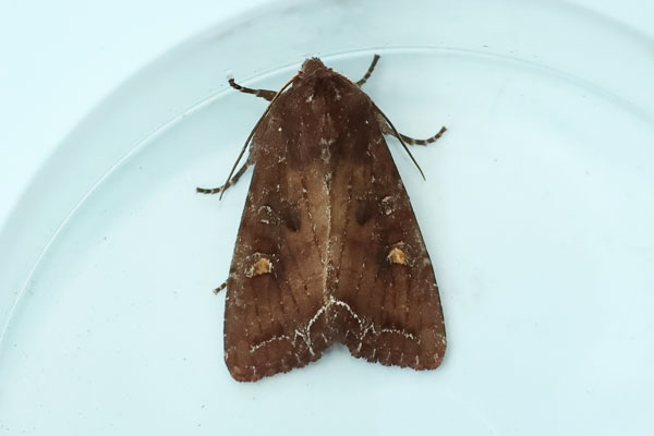 Taken at Aston, Oxon., on June 27th 2022. (© David Hastings) (1/800th sec at f11) DescriptionFamily: Noctuidae (ABH : 73.267) Wing span: 28 - 34mm This species has a uniformly warm brown fore-wing, with an orange blotch in the kidney mark and a fine chalky-white outer cross-line forming a 'W'. It can be found throughout the British Isles. It can be found in most habitats. It is abundant in gardens and other cultivated land, including glasshouses. There is one generation per year from May to late July in most places. In southern Britain there is usually a small second generation from August to September. Larvae feed on a wide range of wild and cultivated herbaceous and woody plants, including Common Nettle, Fat-hen, willowherbs, St John's-wort, English Elm, Hazel and Hop. It is occasionally a pest of tomatoes. Earliest UK sighting: 25th June ; Latest UK sighting: 17th August Sightings