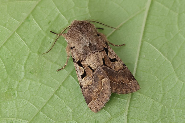 Taken at Aston, Oxon., on March 9th 2025. (© David Hastings) (1/250th sec at f/9) Description Family: Noctuidae (ABH : 73.249) Wing span: 30 - 34mm This species is named after the saddle-shaped black mark in the centre of the forewing, which is thought to resemble a character in the Hebrew alphabet. No other spring moth has a mark like this. It is found throughout the British Isles. It can be found in almost any habitat. There is one generation from March to mid-May in the south, and April to early June in the north. There can be a partial emergence in the autumn. It over-winters as a pupa in an underground cocoon. Larvae feed on a wide range of trees, shrubs and herbaceous plants. It comes to light and sugar, often flying very late in the night, even in cold conditions. It feeds at sallow catkins. Earliest UK sighting: 4th February ; Latest UK sighting: 18th May Sightings | 26-Feb-2026 | : | Aston, Oxon | (4) | | 24-Feb-2026 | : | Aston, Oxon | (4) | | 12-Feb-2026 | : | Aston, Oxon | (1) |